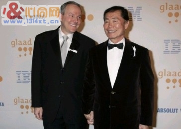 日裔演员乔治-竹井(George Takei)与丈夫Brad Altman(左)。