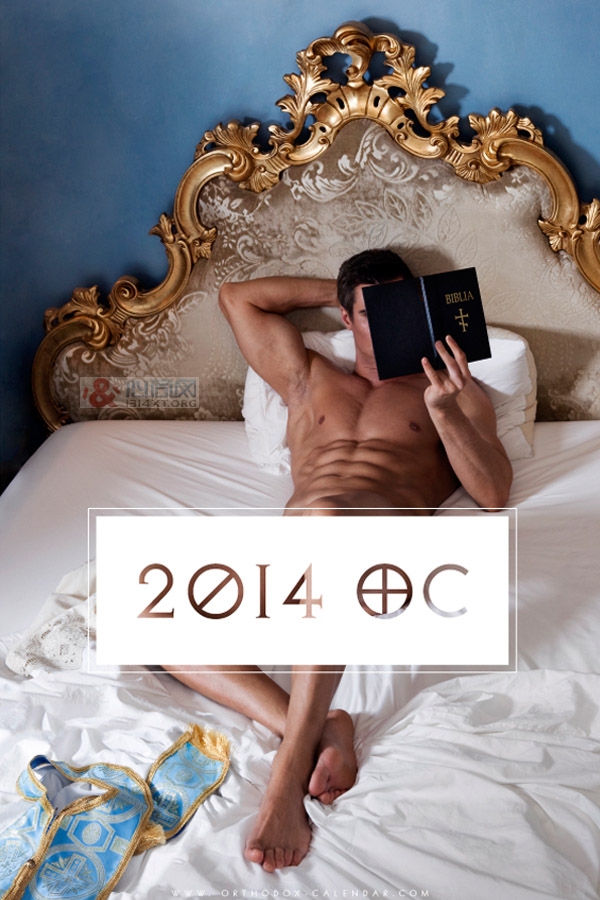 东正教猛男神父在2014年的日历中,全裸展露一身健硕肌肉。(2014年东正教猛男神父火辣性感日历)
