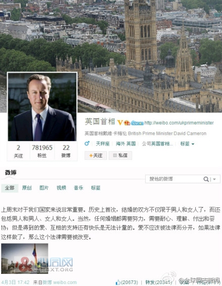 资讯 文章 首页 时尚 旅游 图片 文学 标签:英国首相 曼谷桑拿哪家“端妃”多被“打手”概率最高?头条 圈内的“端妃”一词是指一本正经的“端”作,也就是做作的意思。还记得以前去Mania桑拿的时候,就有很多“端妃”,站在二楼巡航迷... 英国首相新浪微博支持同性婚姻 中国网友热议国际 英国首相卡梅伦在其微博发帖支持同性婚姻,引发中国网友数万转发近万回复。 英格兰和威尔士(3月29日)子时...... 英国首相新浪微博同性婚姻 2014-04-08 英国:首相挺同性婚姻 党内极力反弹国际 随着同性婚姻法案今天(20日)将送回国会审理,英国首相卡梅伦(David Cameron)恐怕面临保守党党内成员又一波反弹。 ...... 英国首相同性婚姻同志婚姻 2013-05-21